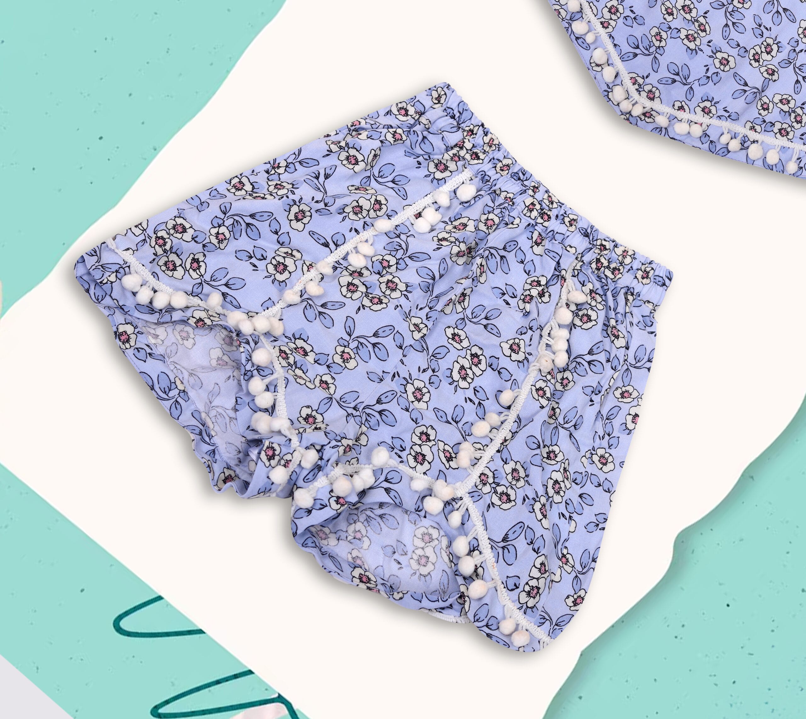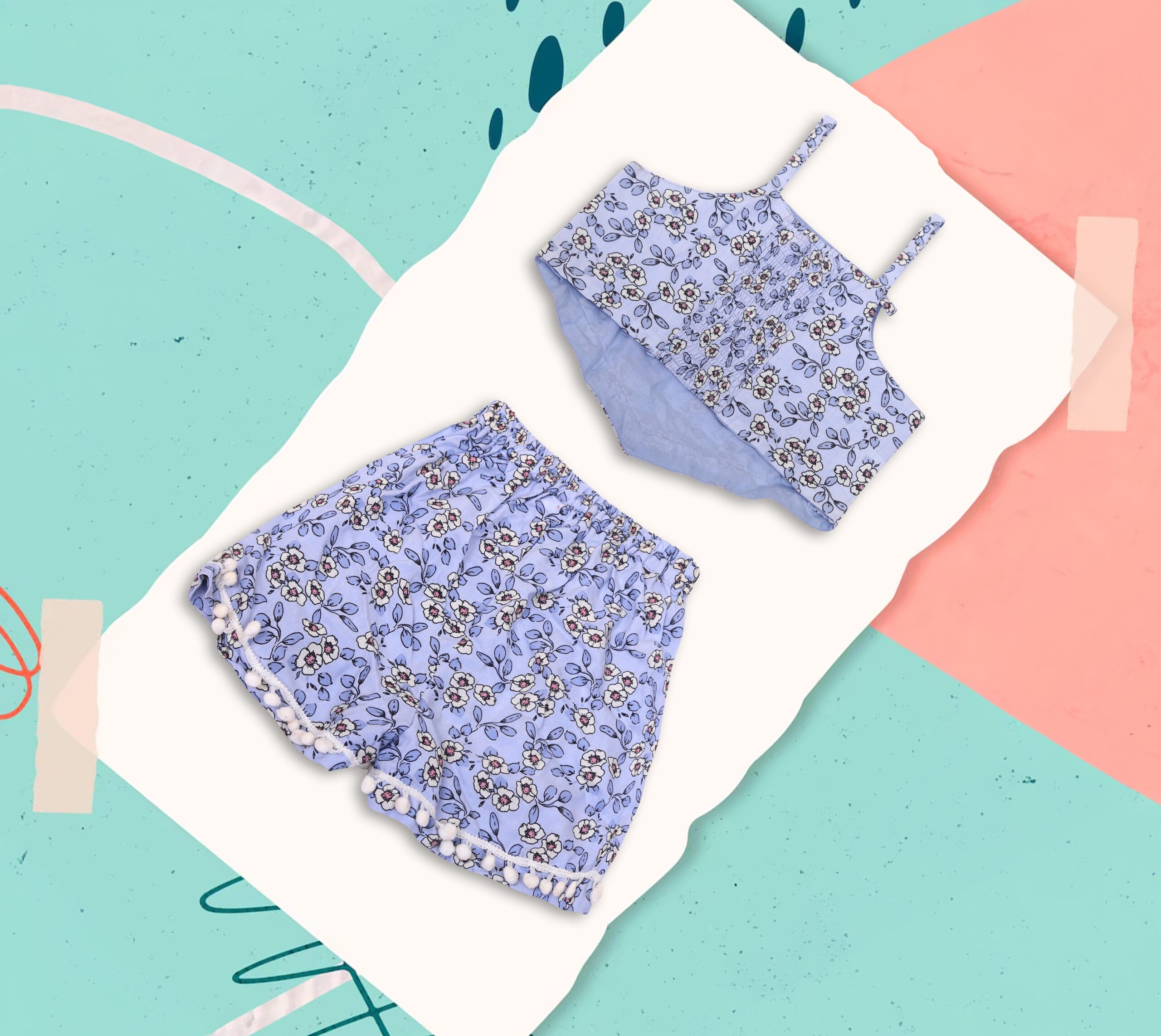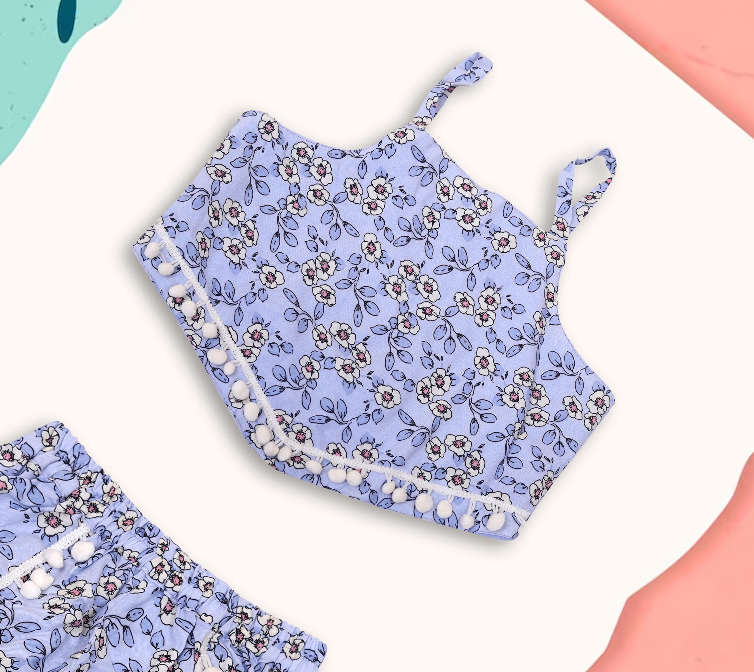 Be the first to review “Sky Blue Floral Crop Top Short Set” Cancel reply